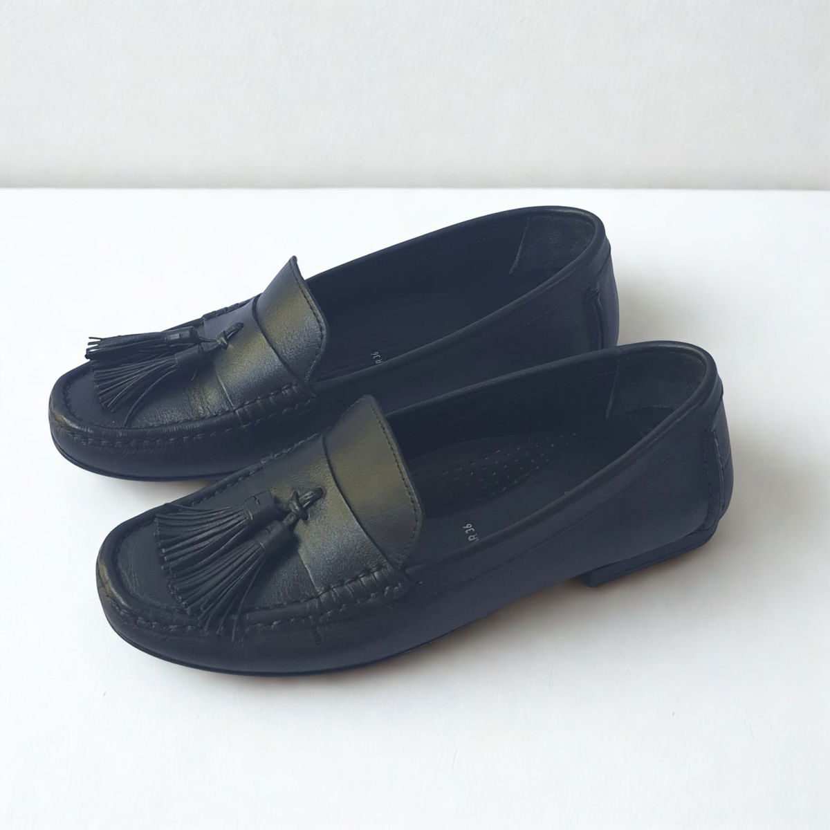 Mocasín de linea clásica y elegante, confeccionado en cuero liso con doble borla en lengüeta