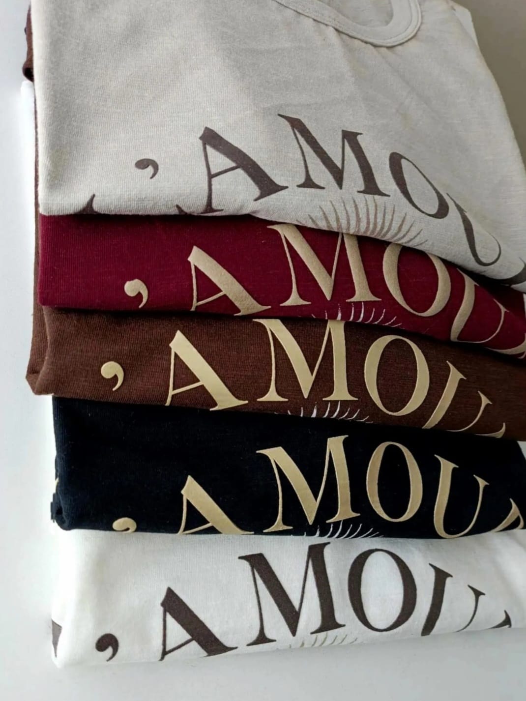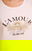 Remera estampada en el centro delantero, manga corta de calce recto con escote redondo y collareta ancha.