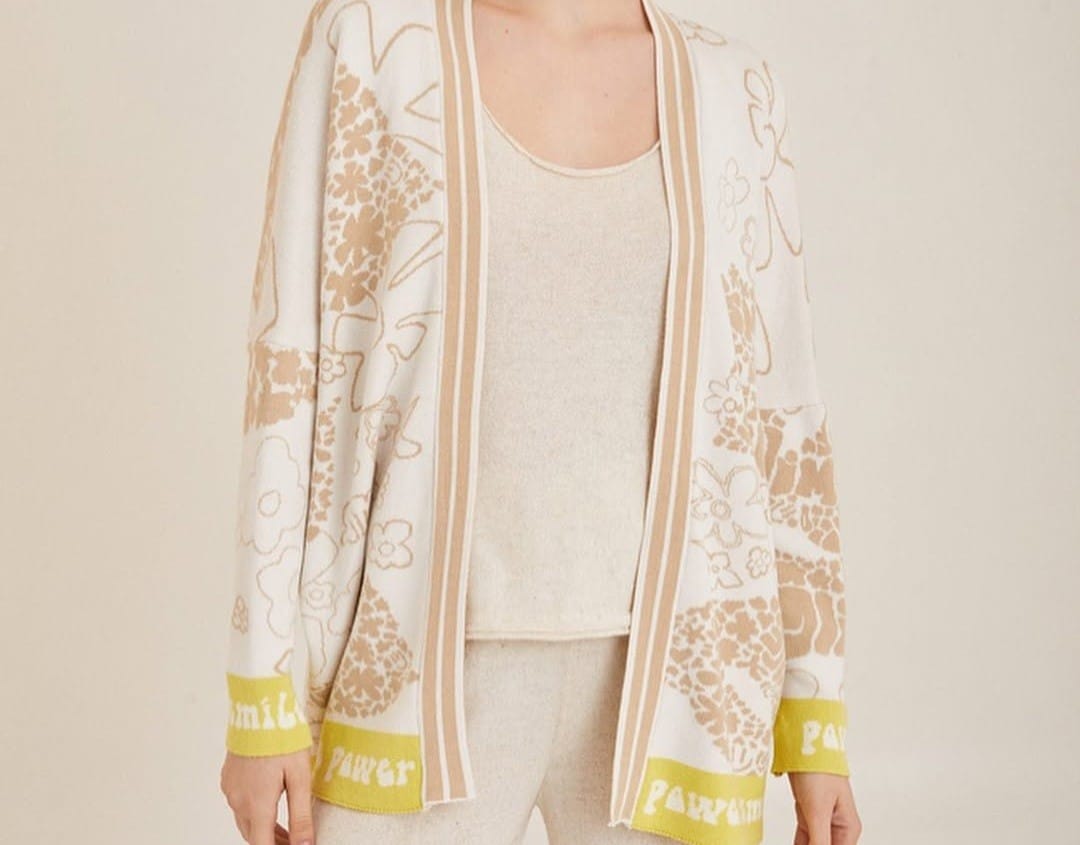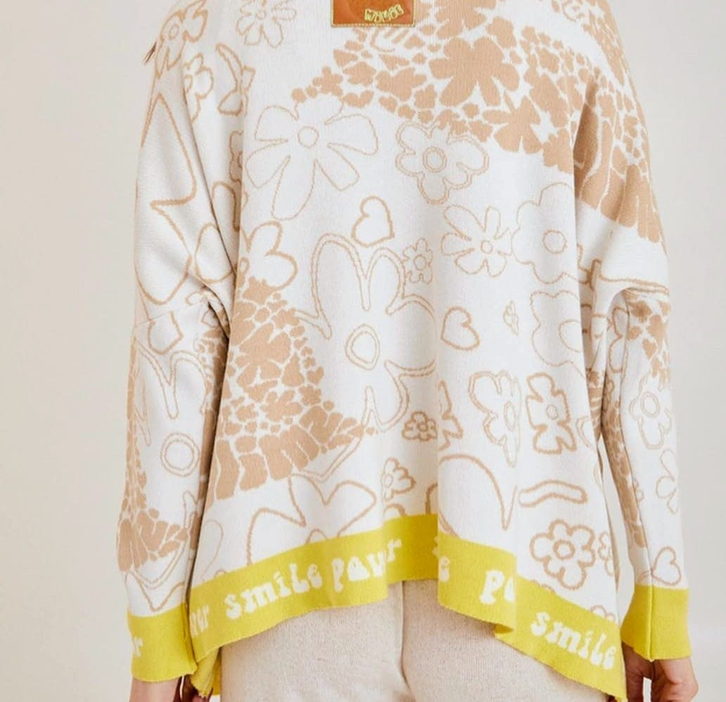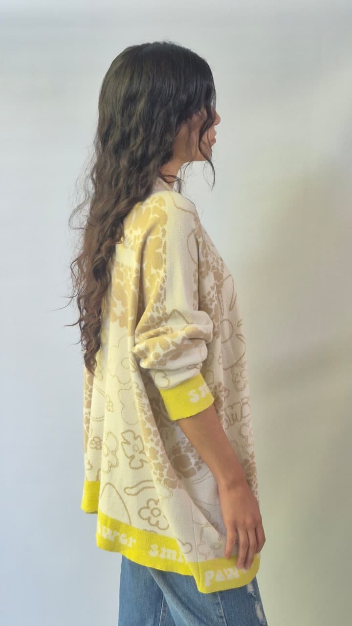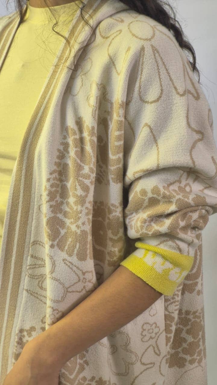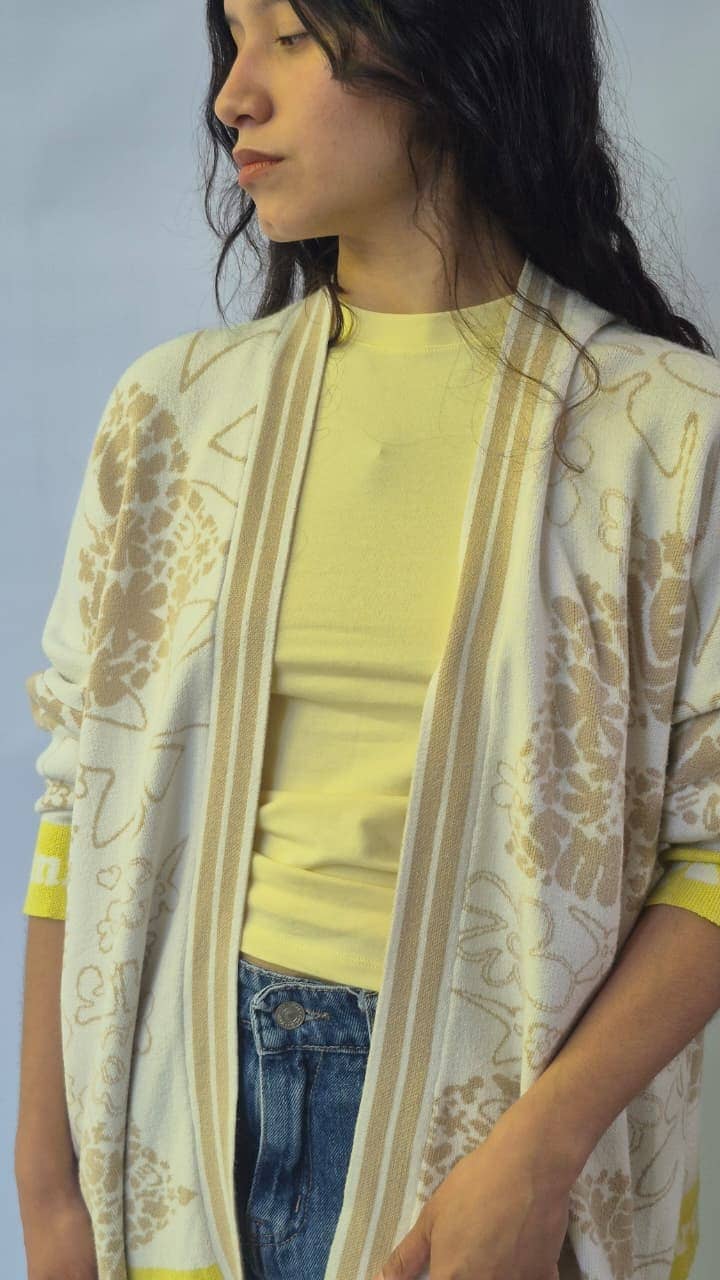 Saco largo hasta la cintura con estampado y mangas largas, colores crema y amarillo