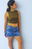 Denim color azul con roturas, costura color ocre