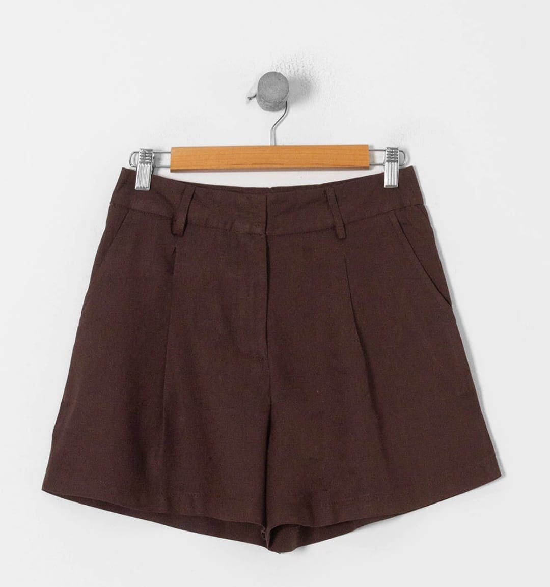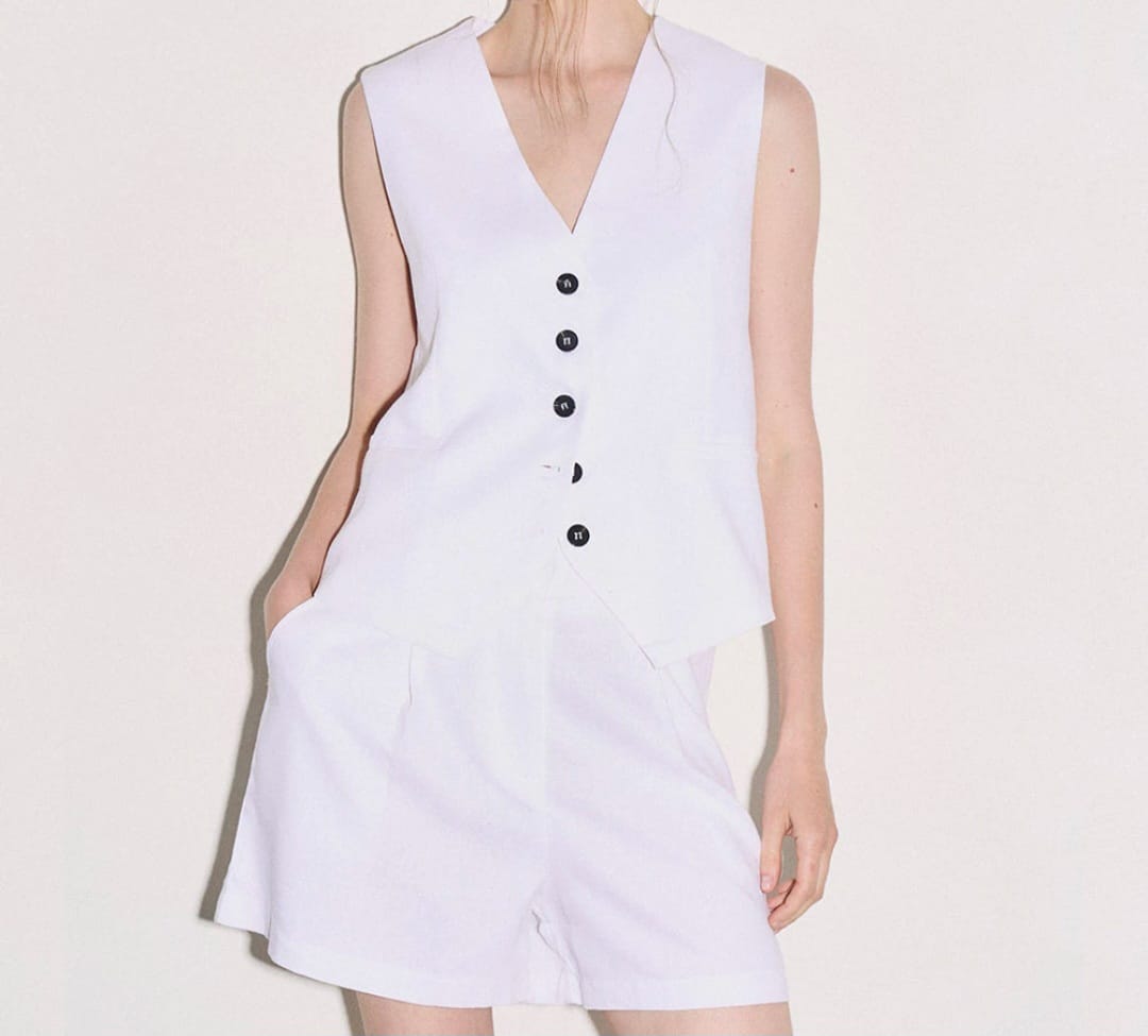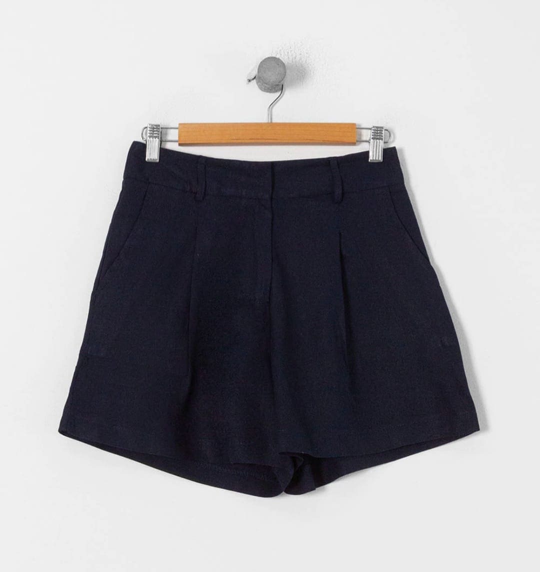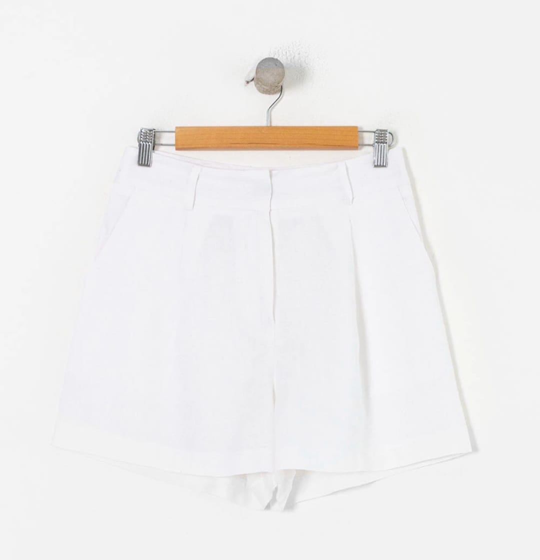 Short confeccionado con lino. Tiro alto con pinzas delanteras. Bolsillos frontales y falso bolsillo de vivo en espalda. Cierre delantero con cremallera, botón interior y gancho. Combinalo con el chaleco Zoe