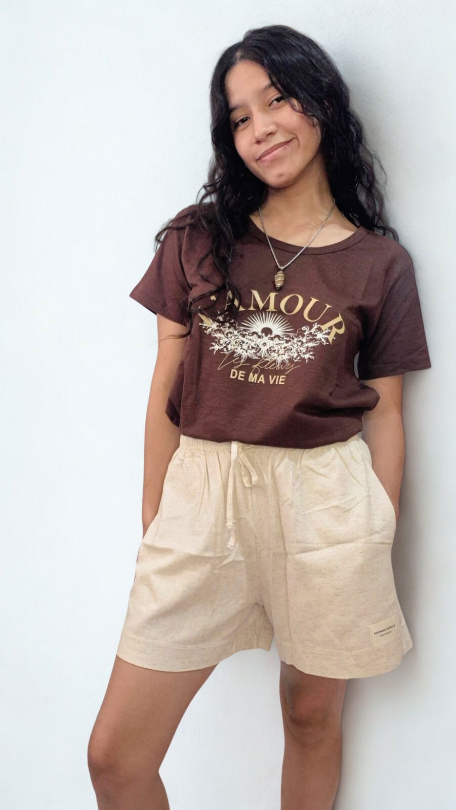 Short con etiqueta personalizada en el frente.