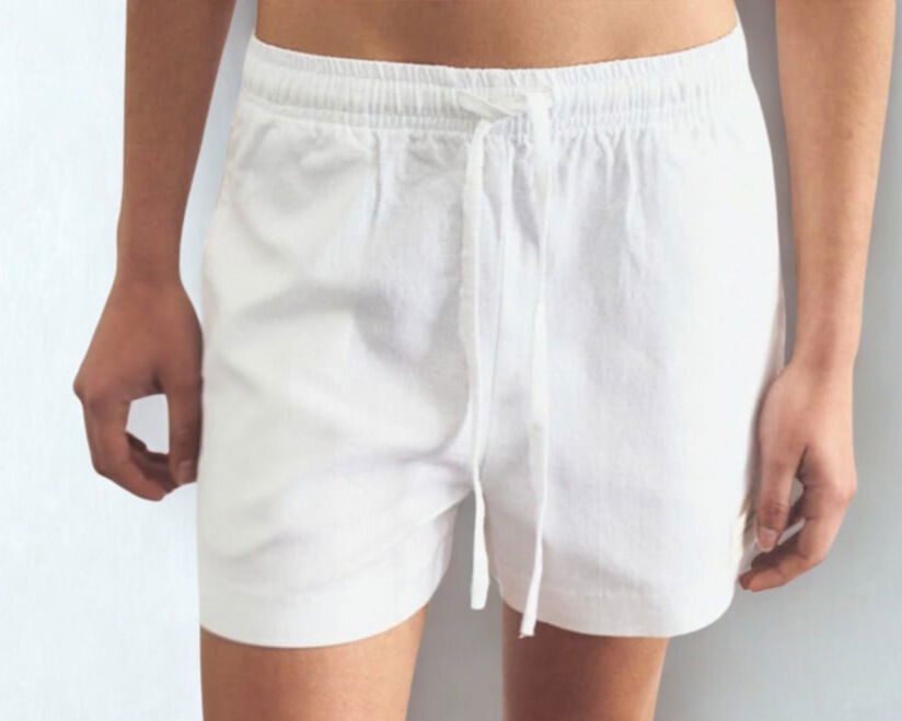 Elástico y cordón en cintura para ajustar y atar.
