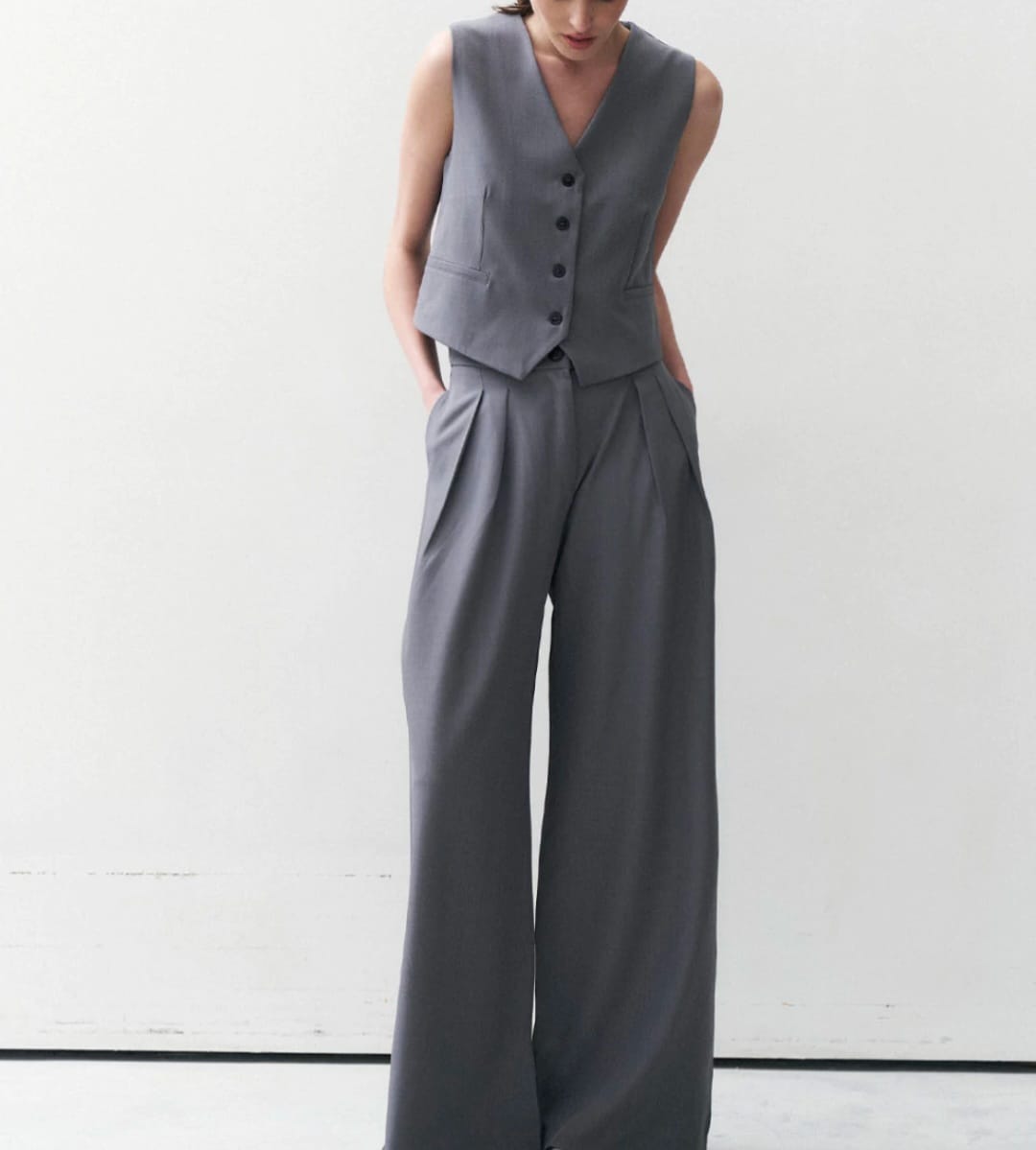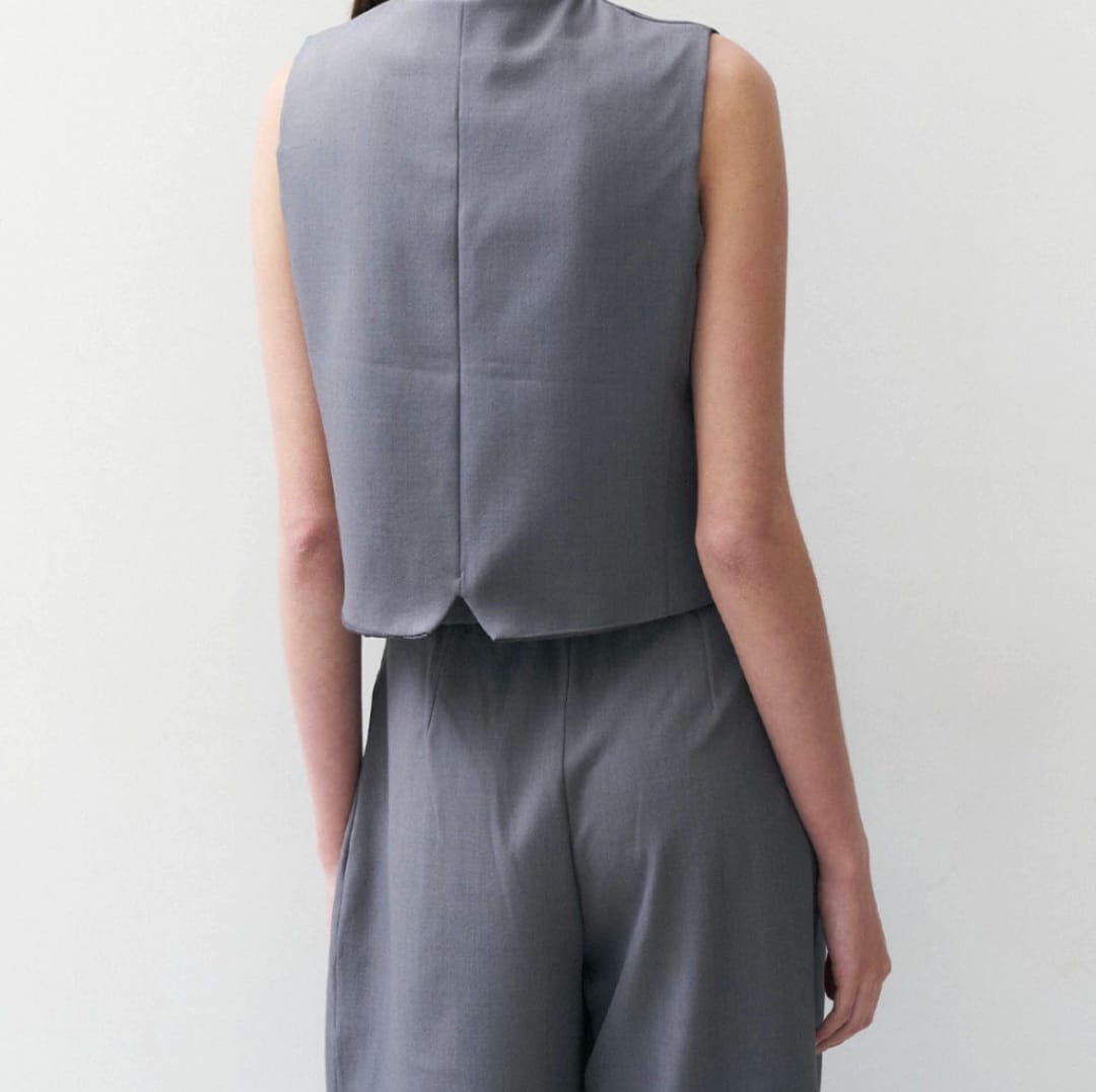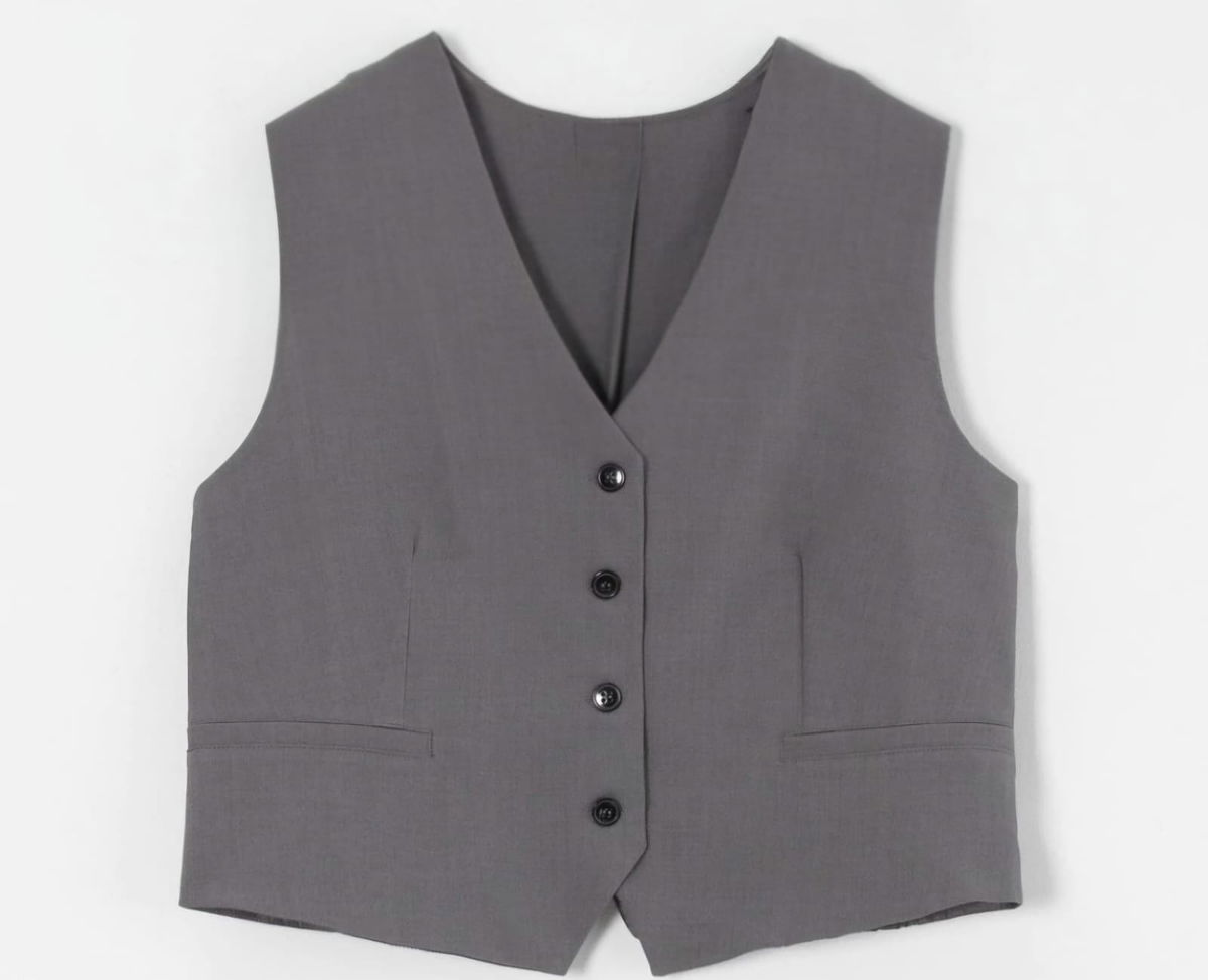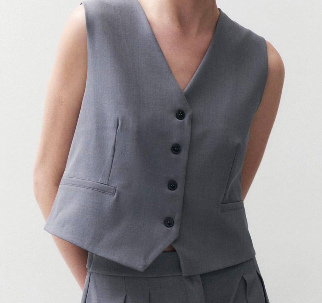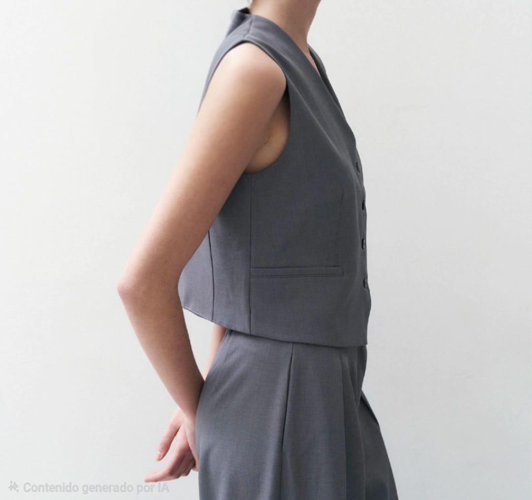 Chaleco sastrero con forrería y bolsillos ojales no funcionales.