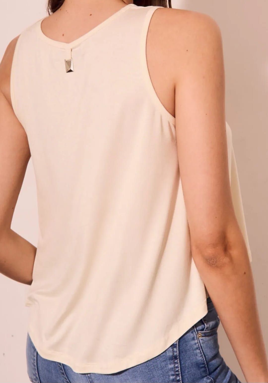 Musculosa de mujer con escote en V cerrado, viscosa con lycra.