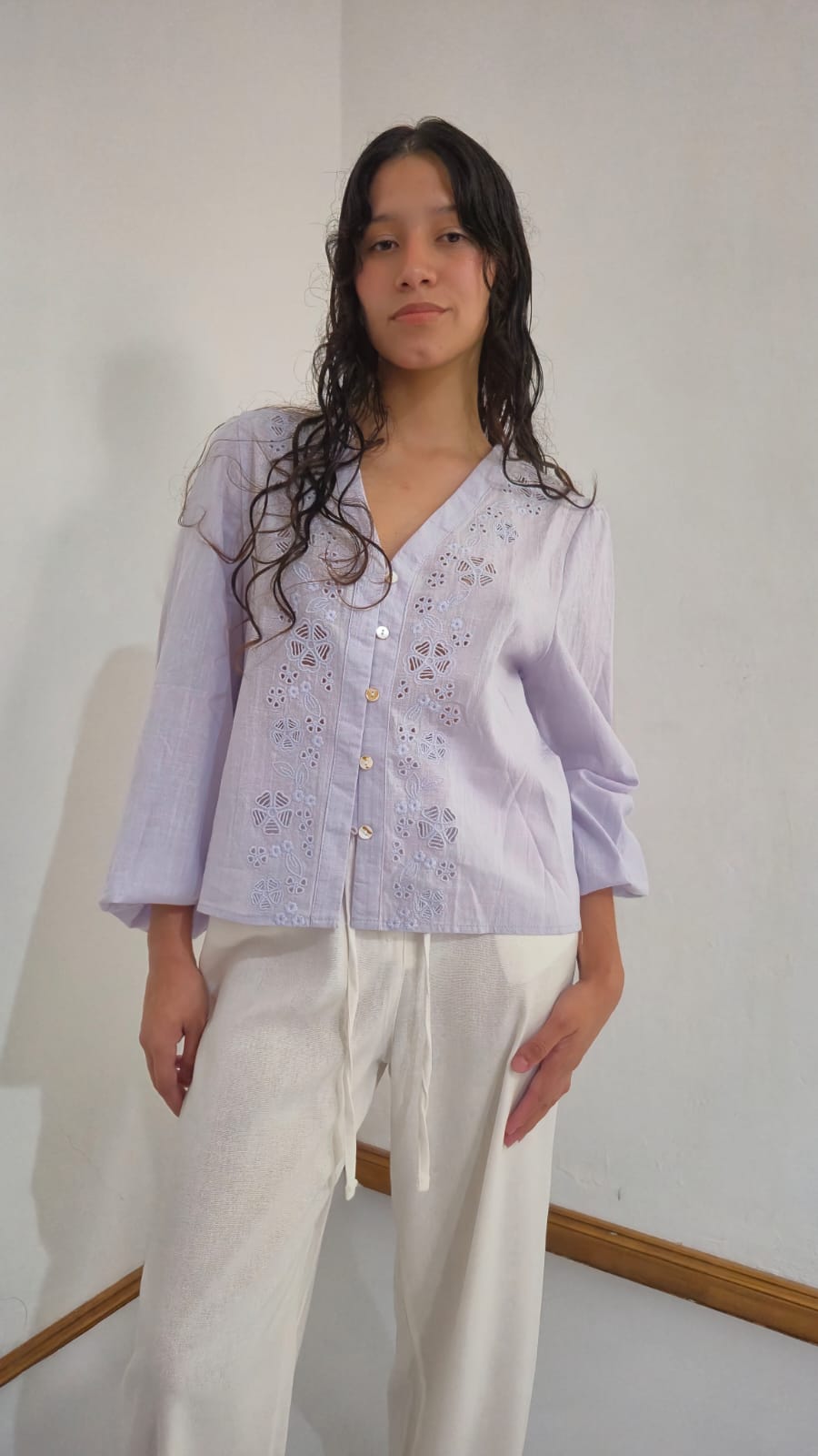 La Camisa Solana no es solo una prenda básica; es esa pieza versátil que resuelve tus looks de lunes a ddomingo. Con un corte relajado y una caída impecable, esta diseñada para la mujer que busca verse elegante sin esfuerzo.