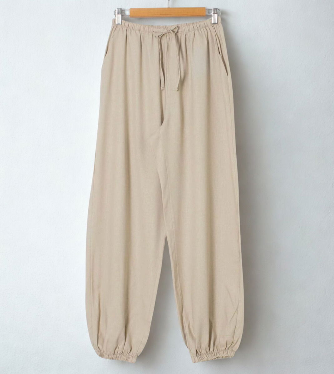 Pantalon balloon de tiro medio, bolsillos en los costados y en la espalda.