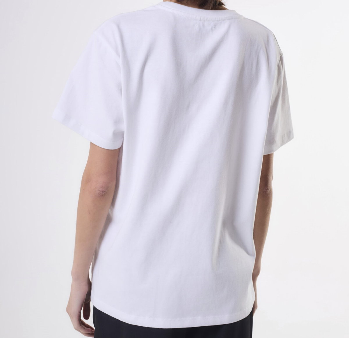 Remera  de calce relajado con rib en cuello hecha en jersey 16/1 con estampa central en delantero.