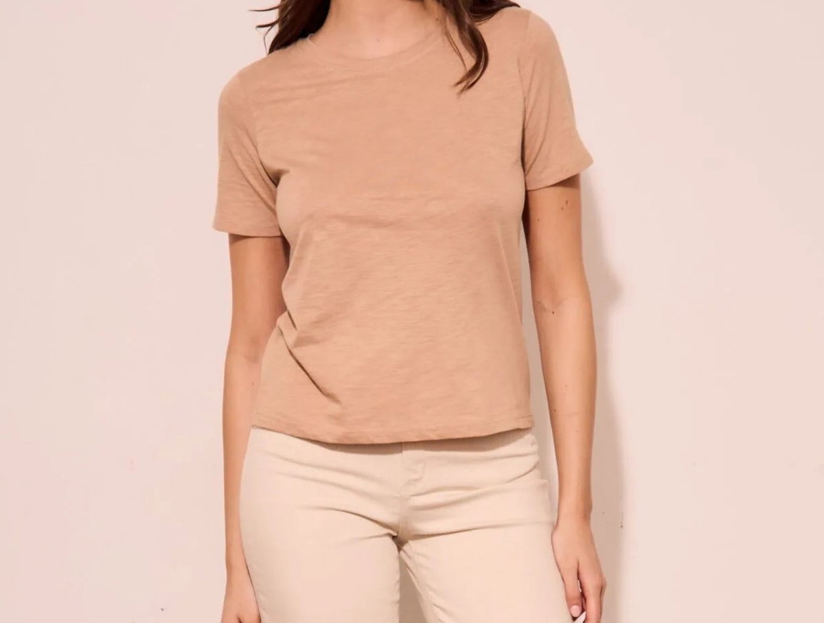 Remera de calce recto manga corta con cuello redondo. Confeccionada en algodón Jersey Flame Pima.